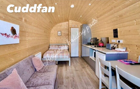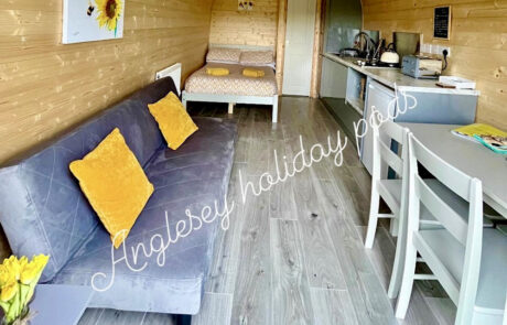 There is something for everyone at Anglesey Holiday Pods, family pods with double bed for parents & sofa bed for kids to share, or our lodge pod with sofa bed for adults & separate room with bunks for kids. Bryn Hafod pod is pet friendly. Cuddfan is our couples pod. Everything is included, towels, bed linen WiFi, flat screen tv etc. All glamping pods are fully equipped with everything you could possibly need. Each pod comes with a kitchen and en-suite shower room, are double glazed & central heated. They all have their own patio area with furniture & fire pit and there’s a large field in front of the pods that guests can use for games/football etc. Lots of attractions nearby & walking distance to pub/restaurant and coffee shop.
