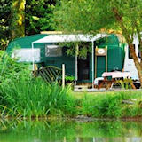 Situated in a very quiet rural location on the very edge of a 970 hectares private forest. The caravans stand in an acre and a half of grounds (mostly lake) with beautiful views across the fields and countryside beyond. It is the ideal location for a peaceful and relaxing holiday. Only one kilometre away from the border with Loire Atlantique and at the far corner of the forest is the point where 3 Departments meet, Ille et Villaine, Loire Atlantique and Maine et Loire. Whilst the charming local town is only 2 kilometres away for supermarket.....
