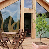 Covered with a thick coat of green and buried in the natural slope, the wooden huts of a new kind fit perfectly into our centenary orchard. Ecological and bioclimatic, they combine comfort, easy living and poetry. The furniture is constructed of wood in the rough or recovery, antique objects, natural fabrics and earth walls...